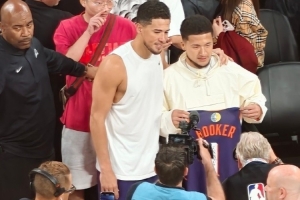 賽后,布克的模仿者和布克合影留念,并獲得布克的親簽球衣,對(duì)此,布克說(shuō)道:“很高興看到中文布克。因?yàn)榭臻g的距離,我以為我們相遇的希望渺茫,但中國(guó)賽是相遇的完美地方。我最終給了他我的比賽球衣。”