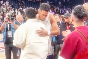 模仿布克走紅的網(wǎng)紅(CY布克??)在社媒上曬出與布克擁抱合影的瞬間,并寫道:“我真的太幸福了、謝謝@NBA幫我圓夢?!?/p>
