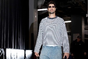 楊瀚森白色連帽衫套裝清爽干練,霍勒迪也是棕色套裝,阿夫迪亞居家風搭配黑超,格蘭特上衣印有宮崎駿動畫《千與千尋》。
