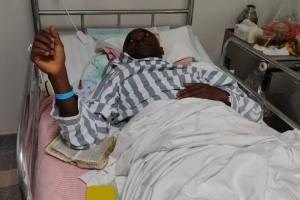 10月9日,老鄉(xiāng)阿布(左)在病房探望術(shù)后的阿薩莫阿/廣西醫(yī)科大學(xué)第一附屬醫(yī)院脊柱骨病外科供圖
