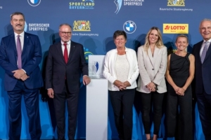 前球員兼長期經(jīng)理卡琳-丹納和梅蘭妮-勒普爾茲,代表正在沃爾夫斯堡參加比賽并以3-1獲勝的球隊(duì)接受了這一榮譽(yù)。出席頒獎(jiǎng)典禮的嘉賓包括獲獎(jiǎng)?wù)唪斆纺岣窈桶萑誓侥岷趩T工喬治-埃默丁格,后者是巴伐利亞最成功的殘疾運(yùn)動(dòng)員之一。