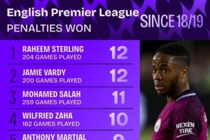 下一篇: 18-19賽季以來英超造點榜:斯特林、瓦爾迪12次最多,薩拉赫11次