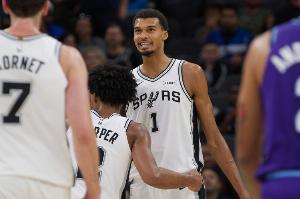 此役,文班亞馬打了24分半鐘,13投9中(三分3中2)、罰球7中7,砍下全隊最高27分11籃板3搶斷,另有4助攻1蓋帽。哈珀出場22分20秒,8投4中(三分1中1),罰球3中2,拿到11分8助攻2搶斷,正負(fù)值+11。