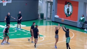 體育資訊10月15日訊 凱爾特人與贊助商New Balance今日聯(lián)合舉辦了教練vs媒體的友誼賽。