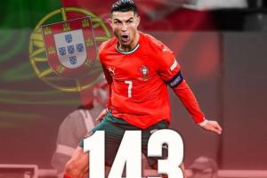 C羅國家隊生涯225場打進(jìn)143球,繼續(xù)領(lǐng)跑國家隊歷史射手榜,領(lǐng)先第二梅西29球!