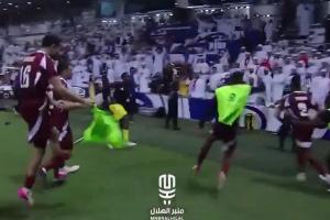這一舉動點(diǎn)燃了阿聯(lián)酋球迷的怒火,他們紛紛向場內(nèi)投資水瓶、鞋子等雜物,更有控制不住的阿聯(lián)酋球迷直接沖場與安保扭打在一起。