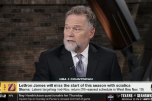 據(jù)著名記者Shams報道,湖人和詹姆斯將11月中旬作為其現(xiàn)實的目標復出日期。