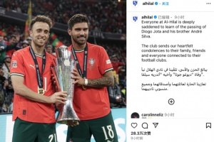 利雅得新月俱樂部的每一個人都為若塔及其兄弟安德烈-席爾瓦的不幸離世深感悲痛。俱樂部在此向他們的家人、好友和他們所在俱樂部的相關(guān)人士表示深切慰問。