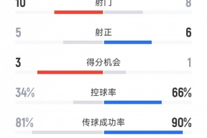體育資訊7月14日訊 在世俱杯決賽,切爾西3-0大勝巴黎,以下為雙方全場(chǎng)數(shù)據(jù)對(duì)比: