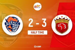 上半場(chǎng)補(bǔ)時(shí)7分鐘。半場(chǎng)戰(zhàn)罷,青島海牛2-3上海海港。