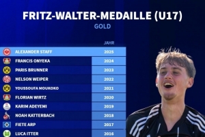 體育資訊10月17日訊 法蘭克福前鋒斯塔夫當(dāng)選德國(guó)U17年度最佳新秀,德國(guó)轉(zhuǎn)會(huì)市場(chǎng)列出了歷屆德國(guó)U17年度最佳新秀名單。