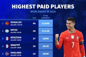 體育資訊10月18日訊 德國(guó)轉(zhuǎn)會(huì)市場(chǎng)統(tǒng)計(jì)了球員2025年的收入,并列出榜單,C羅2.39億歐居首,梅西1.11億歐次席。