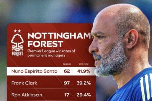 根據(jù)數(shù)據(jù)統(tǒng)計(jì),努諾是森林隊(duì)史英超勝率最高的主帥。努諾率隊(duì)出戰(zhàn)62場(chǎng)英超比賽,勝率達(dá)到了41.9%。上賽季努諾率隊(duì)拿下英超第7,獲得歐聯(lián)杯資格。