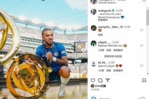古斯托此役為切爾西踢滿全場,賽后他在社交媒體上曬出與獎(jiǎng)杯的合照,配文:“現(xiàn)在它是我們的了,世界冠軍??”