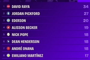 體育資訊10月19日訊 據(jù)統(tǒng)計,阿森納門將拉亞自2023/24賽季加盟球隊(duì)以來,在英超聯(lián)賽中的表現(xiàn)極具統(tǒng)治力。