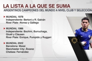 據(jù)ESPN統(tǒng)計(jì),恩佐是第14位獲得過世界杯+世俱杯冠軍的阿根廷球員。