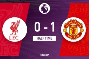 上半場傷停補時4分鐘,半場結(jié)束,利物浦暫0-1曼聯(lián)。
