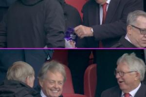 體育資訊10月20日訊 曼聯(lián)vs利物浦下半場,鏡頭給到看臺上,弗格森在看臺上分享巧克力給達(dá)格利什,此時比分曼聯(lián)1-0領(lǐng)先!