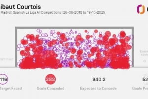 Opta指出,2018-2019賽季庫(kù)爾圖瓦加盟皇馬以來(lái),預(yù)期失球340.2粒,而去掉烏龍球的實(shí)際失球?yàn)?88粒,這意味著庫(kù)爾圖瓦阻止了52.2粒失球,五大聯(lián)賽門將同期最多。