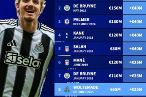 1、薩拉赫,2018年5月,1.5億歐,+7000萬歐