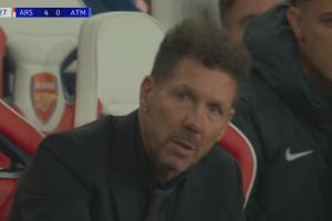 體育資訊10月22日訊 阿森納vs馬競進(jìn)入補時前,鏡頭給到西蒙尼,此時馬競0-4落后!