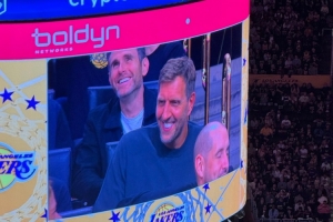 本場比賽,NBA名宿諾維茨基現身湖人主場觀戰(zhàn)。