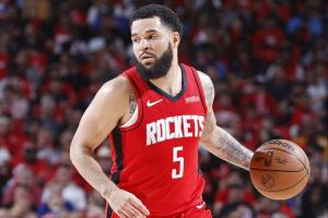 比賽中,名記Marc J.Spears發(fā)推寫(xiě)道:“弗雷德-范弗里特正在某個(gè)地方搖頭?;鸺娴男枰硗庖幻匦l(wèi)?!?/p>