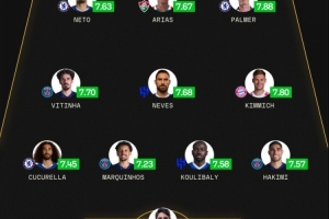 前鋒:內(nèi)托(切爾西,7.63分)、瓊-阿里亞斯(弗魯米嫩塞,7.67分)、帕爾默(切爾西,7.88分)