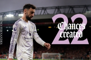 B費(fèi)本賽季為曼聯(lián)出戰(zhàn)8場(chǎng)英超比賽,打進(jìn)2球,助攻1次。曼聯(lián)官方社媒曬出數(shù)據(jù)海報(bào),確認(rèn)B費(fèi)本賽季聯(lián)賽創(chuàng)造22次機(jī)會(huì),英超球員中最多。