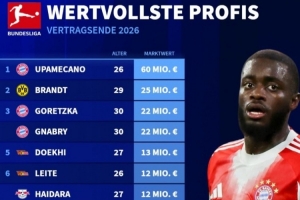 體育資訊10月23日訊 《轉會市場》統(tǒng)計了合同將在明夏到期的德甲球員身價情況,拜仁中衛(wèi)于帕梅卡諾獨自領跑。