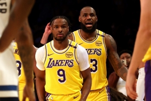 比賽第二節(jié)4分鐘,布朗尼詹姆斯同時登場,完成父子同臺歷史性瞬間!
