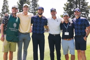 體育資訊7月15日訊 今天,勇士球星庫里曬出了自己參加塔霍湖高爾夫名人賽的照片和視頻。