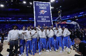 衛(wèi)冕冠軍雷霆在新賽季的前2場(chǎng)比賽均進(jìn)入加時(shí),他們?cè)诮夷粦?zhàn)中曾通過(guò)2個(gè)加時(shí)以125-124險(xiǎn)勝火箭。