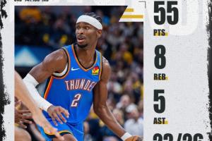 本場比賽,雷霆當家球星亞歷山大一展雙MVP風采,攻防俱佳,戰(zhàn)力十足,末節(jié)&加時頻頻取分,砍下生涯新高的55分&罰球數(shù)生涯新高26記,同時成為本賽季全聯(lián)盟首位50分先生!