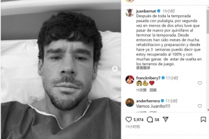 貝爾納特寫道:“上個賽季我一直飽受恥骨炎困擾,不到兩年時間里,我第二次在賽季結(jié)束后接受了手術(shù),此后數(shù)月我投入大量精力進行康復訓練和備戰(zhàn),如今我已完全康復,迫不及待想要重返賽場。”