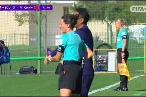 體育資訊10月24日訊 U17女子世界杯小組賽C組,厄瓜多爾女足U17vs中國女足U17。比賽第73分鐘,中國隊教練組申請VAR挑戰(zhàn),認(rèn)為對手禁區(qū)內(nèi)手球。裁判觀看回放后判認(rèn)定不是點球。