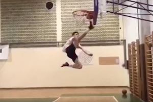 舍什科說:“是的,那確實(shí)是我。挺搞笑的,因?yàn)楫?dāng)時球卡在籃框,我也不知道為什么就想用腳去把它夠下來。這可不是每個人都能做到的?!?/p>