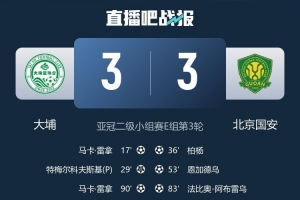 目前亞冠二級聯(lián)賽小組賽三輪戰(zhàn)罷,國安僅收獲兩場平局,暫時(shí)小組墊底。下一輪國安將回到主場與大埔再次交手。