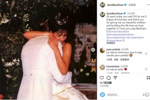 體育資訊7月4日訊 貝克漢姆更新社媒動態(tài),慶祝與維多利亞結(jié)婚26周年紀(jì)念日。