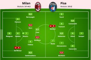 體育資訊10月25日訊 AC米蘭2-2絕平比薩,賽后米體對米蘭將帥的表現(xiàn)進(jìn)行了打分。