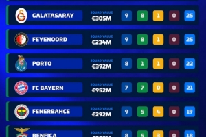 體育資訊10月25日訊 德轉(zhuǎn)盤點了歐洲前十聯(lián)賽目前仍保持不敗的球隊,共計8隊,其中五大聯(lián)賽僅剩拜仁、亞特蘭大。具體如下: