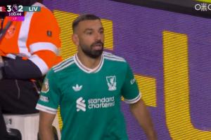 體育資訊10月26日訊 利物浦vs布倫特福德,比賽補(bǔ)時(shí)7分鐘,第101分鐘,薩拉赫先是門(mén)前搶點(diǎn)沒(méi)進(jìn),之后禁區(qū)外索博遠(yuǎn)射被撲。