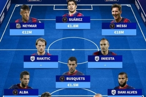 前鋒:內(nèi)馬爾(桑托斯,1200萬)、蘇亞雷斯(邁阿密國際,180萬)、梅西(邁阿密國際,1800萬)