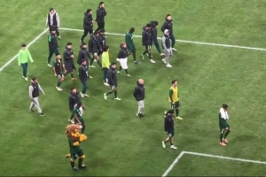 博主“斯文已逝”寫道:國(guó)安賽后謝場(chǎng)環(huán)節(jié)應(yīng)該是有人提前回更衣室了,頂著全場(chǎng)噓聲和“丟人現(xiàn)眼”的喊聲走了一圈,另一邊海牛功臣薩里奇獲得大片掌聲。