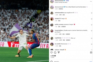 他也在賽后通過社媒曬出同亞馬爾的對位照,并配文:“這就是皇家馬德里和伯納烏球場!”