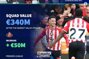 體育資訊10月27日訊 《轉(zhuǎn)會(huì)市場》在近日已經(jīng)更新了五大聯(lián)賽球隊(duì)身價(jià),他們也據(jù)此列出了各大聯(lián)賽最新身價(jià)更新后的身價(jià)(歐元)上漲和下降最多的球隊(duì)。