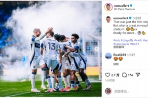 體育資訊10月28日訊 美職聯(lián)季后賽第一輪首場比賽,穆勒點(diǎn)射破門,溫哥華白浪主場3-0擊敗達(dá)拉斯FC,占據(jù)晉級(jí)先機(jī)。