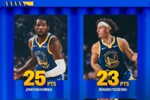 在昨日的比賽中,勇士在主場131-118擊退來訪的灰熊。這場比賽,勇士有四個(gè)人得分上20,其中巴特勒20分、庫明加25分、波杰姆斯基23分、穆迪20分;而值得一提的是,這場比賽庫里僅11次出手拿到16分,出戰(zhàn)時(shí)間只有29分42秒。