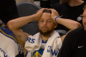 GIF-波斯特命中三分,庫里抱頭