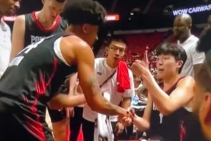 開拓者的夏季聯(lián)賽第一場,楊瀚森驚艷了全世界。不過在第三節(jié)節(jié)末,當(dāng)楊瀚森張開雙手要球,隊(duì)友DJ-卡爾頓卻完全無視,在瘋狂運(yùn)球之后高難度強(qiáng)投——皮球砸筐而出。